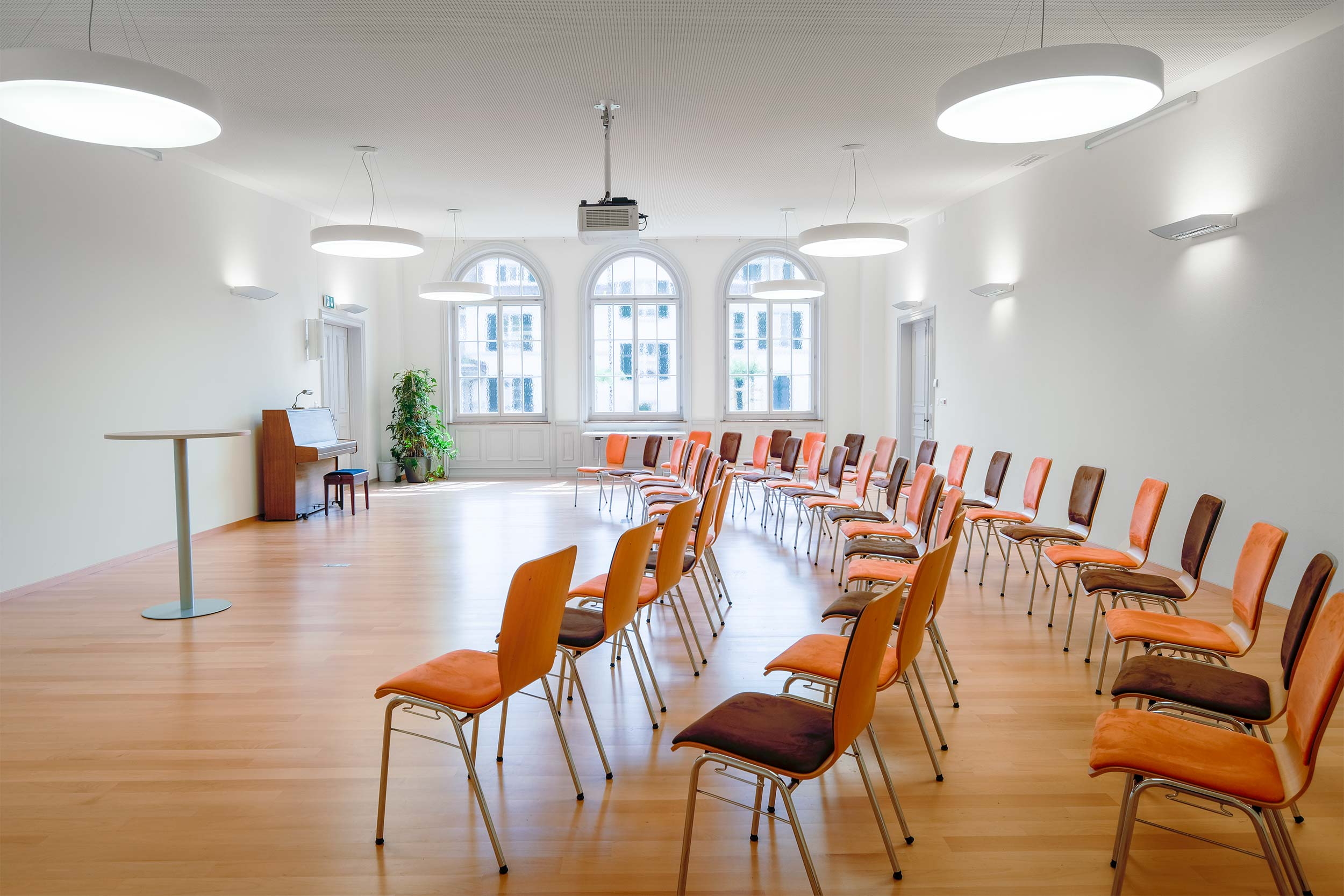 | Unsere grösste Räumlichkeit. Der Seminarraum in der Kapelle, bietet Platz für bis zu 90 Personen. |
