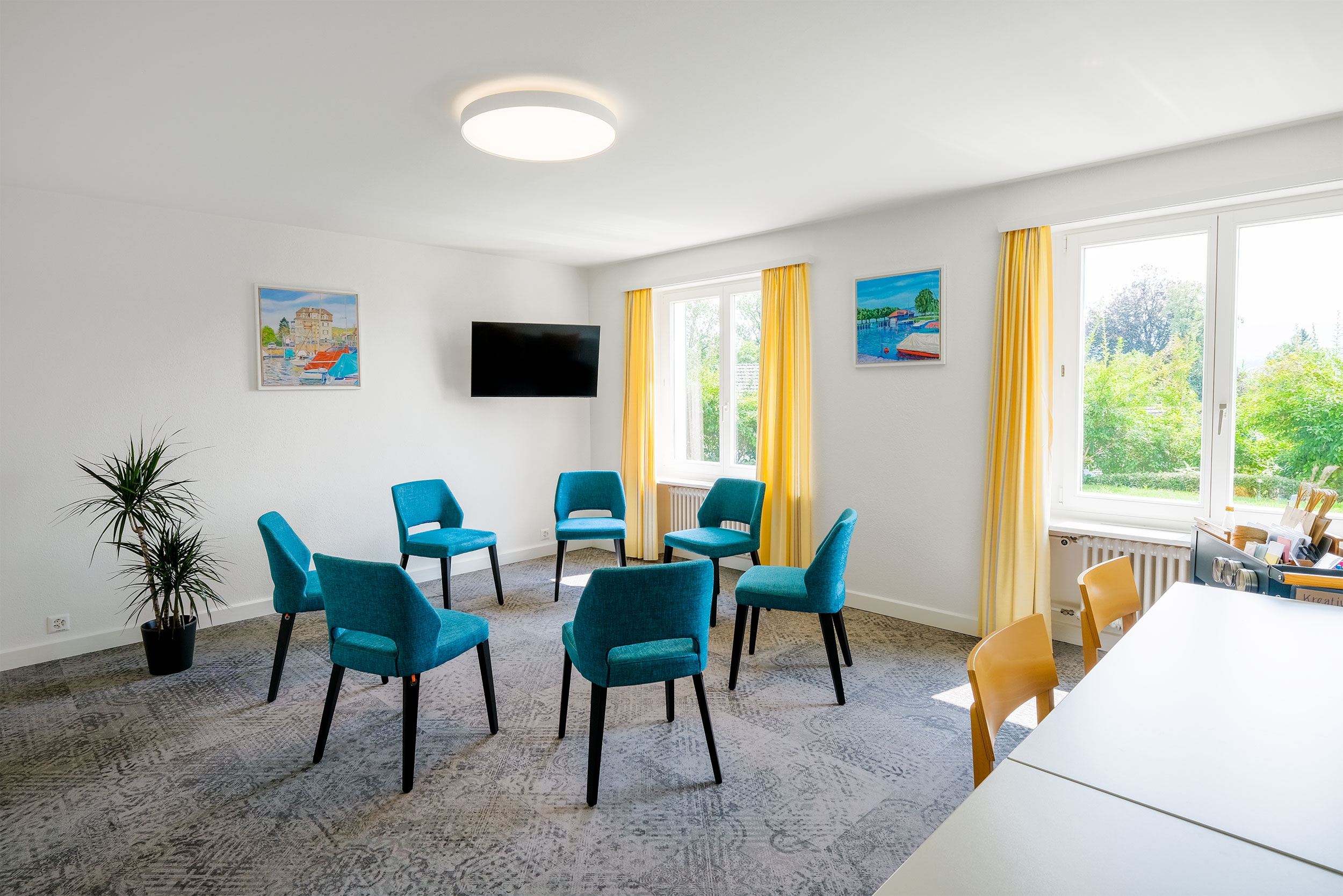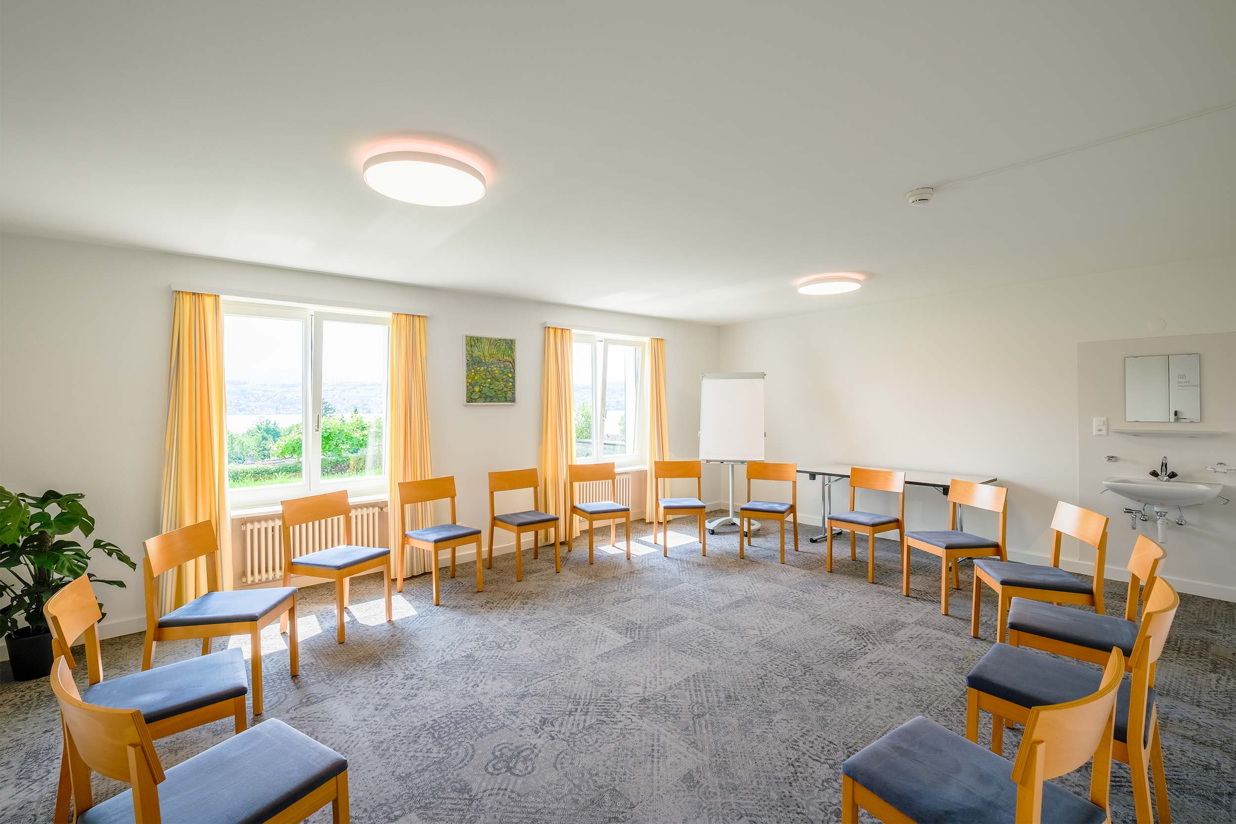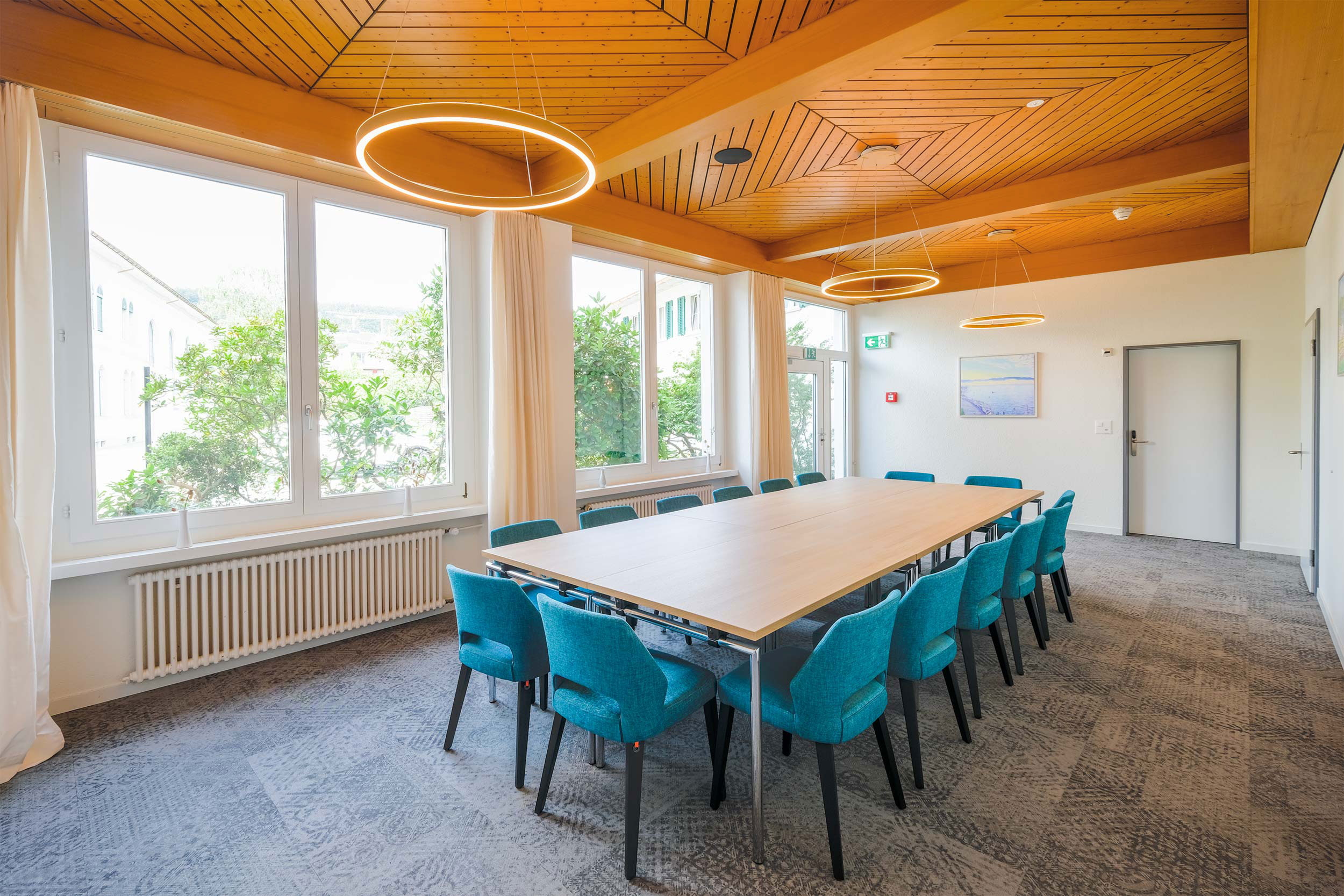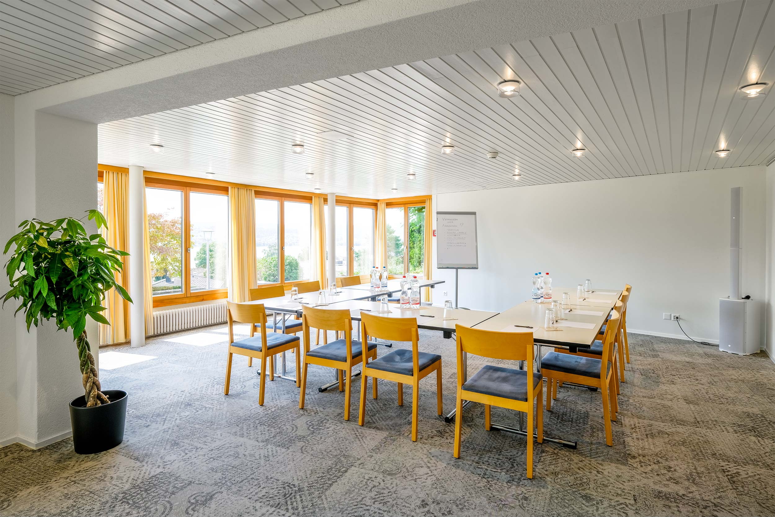 | Mit direktem Zugang zu unserem Aussenbereich ist dieser Raum ideal für längere Seminare – inklusive der Möglichkeit, unseren Garten zu nutzen. |