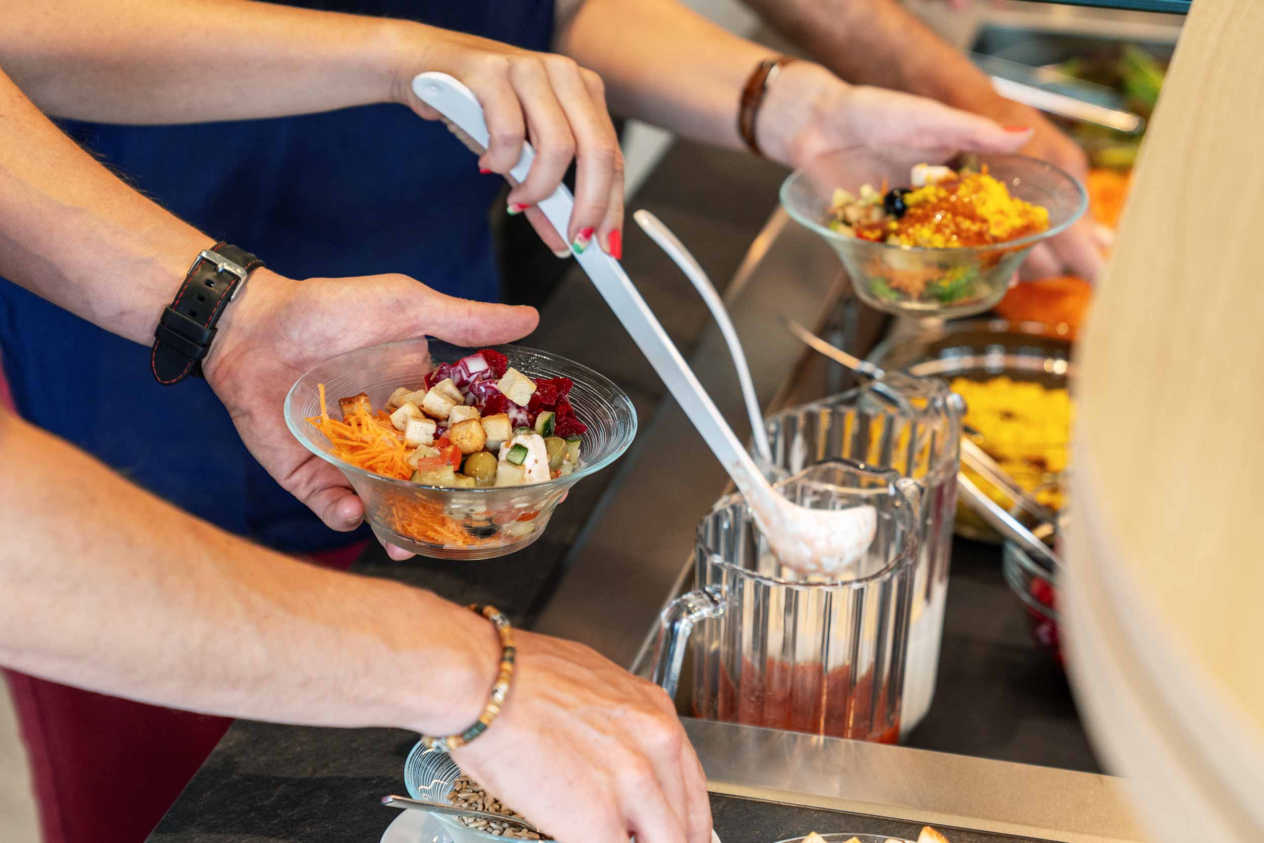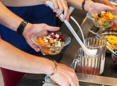 Lassen Sie sich nach Herzenslust verwöhnen – immer begleitet vom prächtigen Ausblick auf den See und die Berge. An der geschwungenen Buffetanlage im Zentrum des Restaurants bedienen Sie sich nach Ihrem Gusto. Unsere aufmerksamen Servicepersonen sind bei Fragen und Wünschen engagiert für Sie da und machen Ihren Aufenthalt morgens, mittags und abends zum Genuss mit Gastlichkeit.