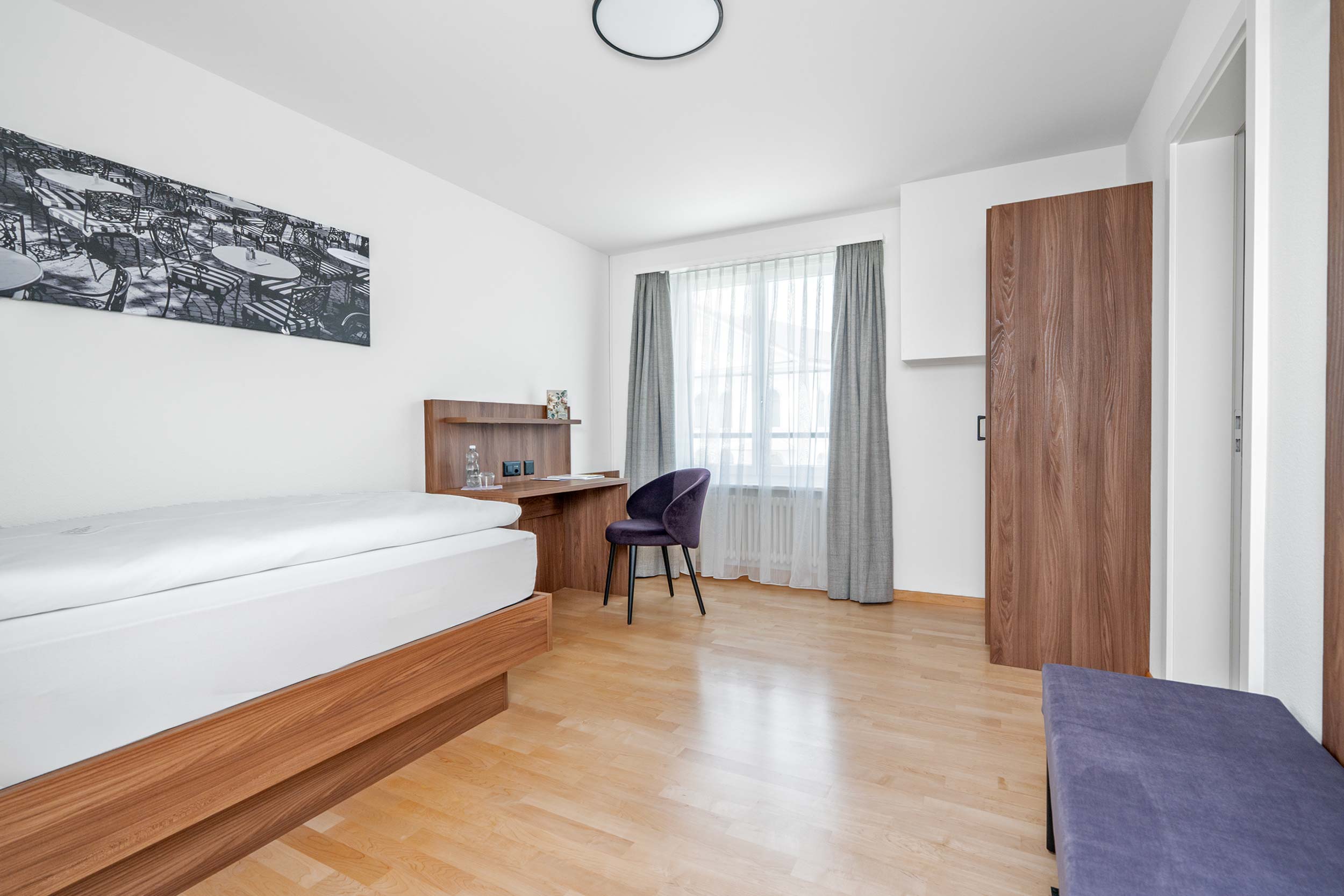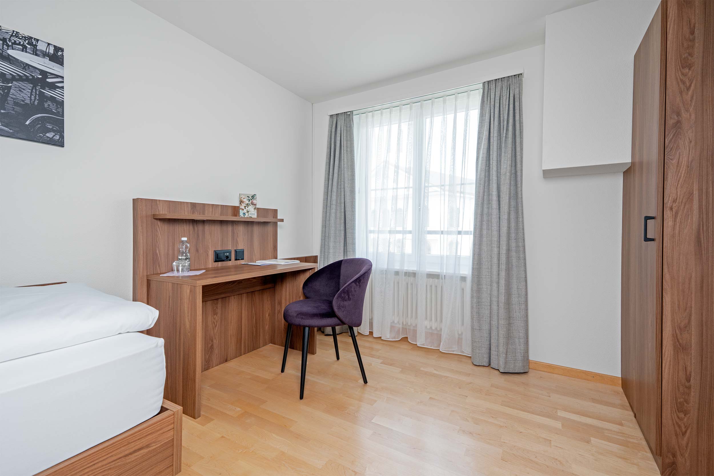 Das ideale Zimmer für Alleinreisende, die eine preiswerte Unterkunft suchen. Alle drei Zimmer dieser charmanten Zimmer-Kategorie sind auf die Kapelle ausgerichtet. Eines der Zimmer ist mit Parkettboden ausgestattet und daher allergikerfreundlich.