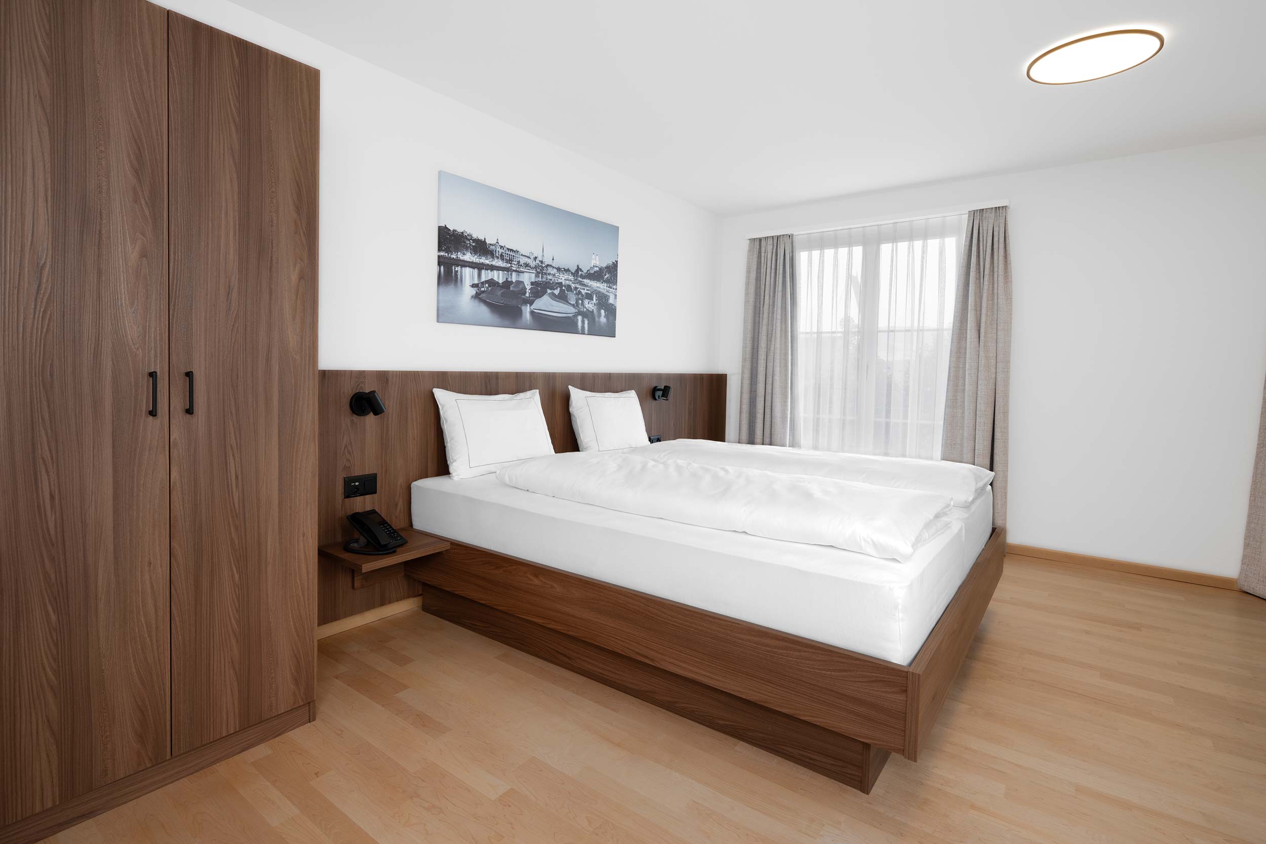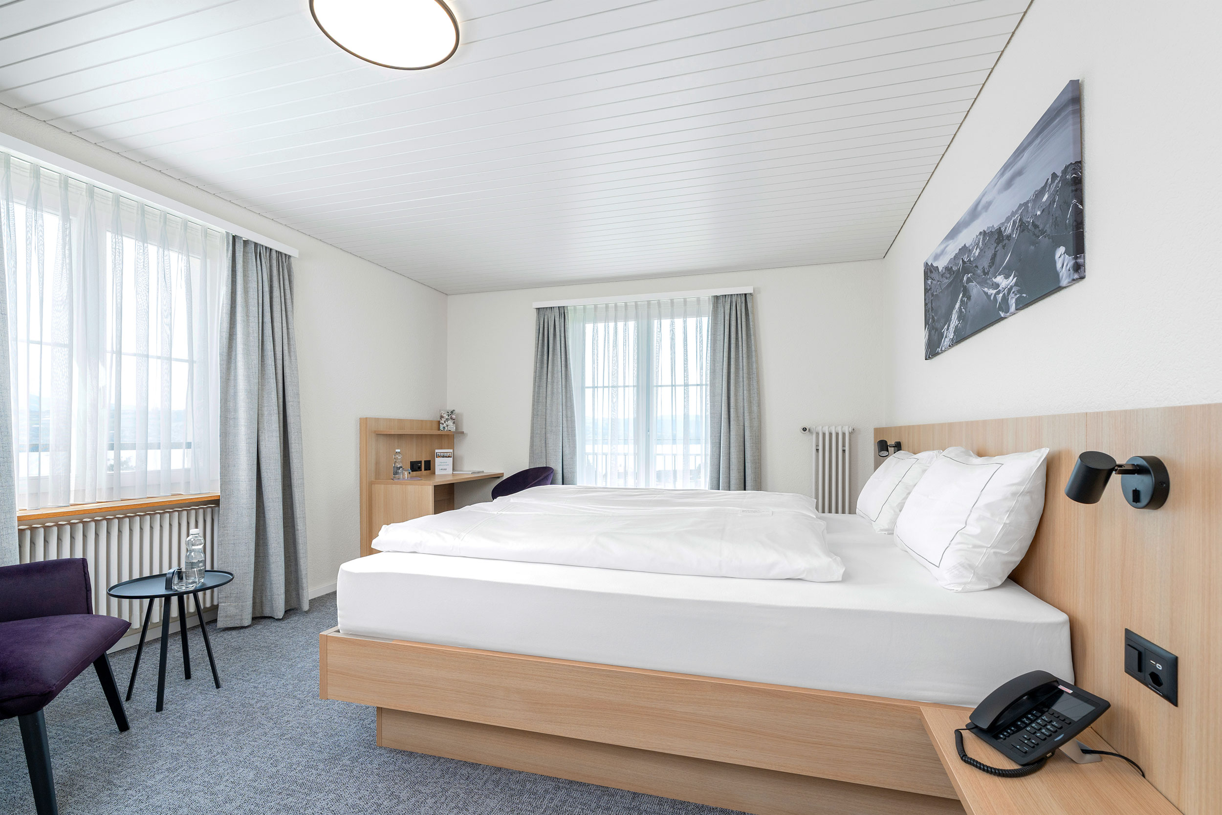 Abends zu zweit auf dem eigenen Balkon den Sonnenuntergang mit Blick auf See und Berge geniessen: Das Doppelzimmer Premium krönt Ihren Aufenthalt über dem Zürichsee. Zwei der insgesamt sieben Doppelzimmer Premium sind für Allergiker geeignet. Diese sind mit Parkett ausgestattet.