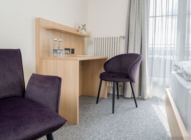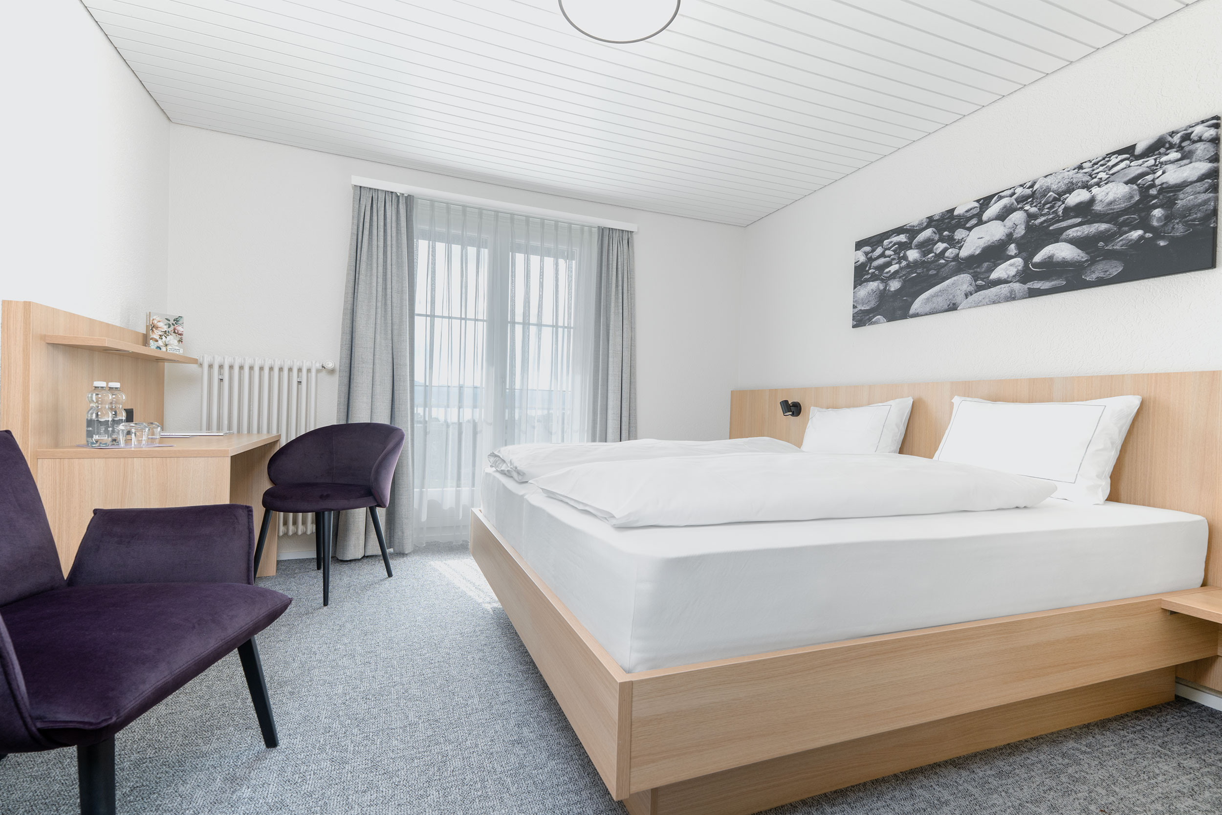 In diesen Zimmern vereinen sich eine gemütliche Ausstattung mit einladender Atmosphäre – und Sie erhaschen erst noch einen Blick auf den See. Ein Standard-Zimmer ist mit Parkett ausgestattet und somit für Allergiker geeignet.